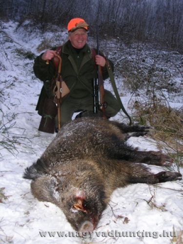 Be honest, which hunter does not dream of a winter evening or even a winter night? Especially, if he/she could enjoy such beautiful sight to behold, as shown on this photo and give a big tusker the traditional hit-break. Wild-boars are the favourites among our hunters, but not everybody can afford a kill of a tusker with really big tuskers. In the recent 22 years I have learned that to most of my guest - an advance guaranty of the invoiced amount is very important. This is also the reason, why I have (similar to the boar-hunts in the summer) compiled a very affordable wild-boar package for the winter (does not include game with antlers).